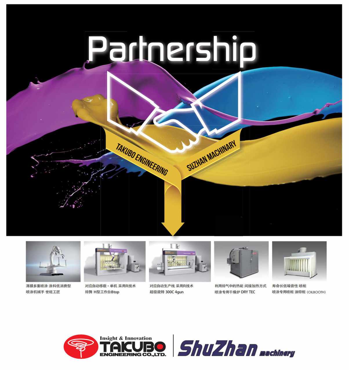 日本泰酷寶工程株式會(huì)社成立于1975年,作為代表日本噴涂系統(tǒng)的廠商,產(chǎn)品不僅供應(yīng)給日本國(guó)內(nèi)企業(yè),還遠(yuǎn)銷到中國(guó),韓國(guó),歐美等世界各地。尤其是機(jī)械手噴涂系統(tǒng)“SOFTBOY PRO”,采用了與東芝機(jī)械共同開發(fā)的懸吊式平行移動(dòng)機(jī)械手技術(shù)。主力產(chǎn)品SOFTBOY PRO的噴涂設(shè)備得到業(yè)界的肯定。2016年舒展機(jī)械與日本泰酷寶正式達(dá)成戰(zhàn)略合作,共同致力于研發(fā)高品質(zhì),低成本,重環(huán)保的涂裝系統(tǒng)。為改善涂裝環(huán)境,我們正在從效率和性能等方面全面綜合地考慮設(shè)備的安裝場(chǎng)地、涂料能源消耗量、環(huán)境問(wèn)題、成本等與涂裝密切相關(guān)的因素,進(jìn)行系統(tǒng)的設(shè)計(jì)、產(chǎn)品的開發(fā)。近年來(lái)已共同在蘇州、南通、上海等地區(qū)為客戶提供了安心并貢獻(xiàn)利益的產(chǎn)品。不僅提高涂裝效率、還使涂裝作業(yè)對(duì)產(chǎn)品、人、地域環(huán)境的影響降低到最小,同時(shí)實(shí)現(xiàn)了高品質(zhì)產(chǎn)品的量產(chǎn)化、能源的充分有效利用、成本的降低。名副其實(shí)的〔實(shí)用〕、〔可信賴〕涂裝機(jī)械手、技術(shù)尖端的捕集系統(tǒng)、高安全性的干燥爐系統(tǒng)、以及凈化系統(tǒng)……。
