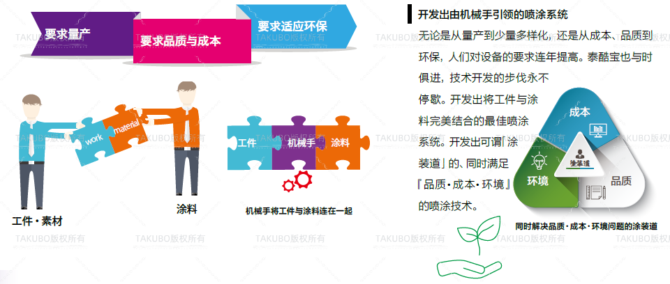 摒棄“只要能噴涂就行”的簡(jiǎn)單思維,泰酷寶攜手自研的R技術(shù),巧妙地將一系列機(jī)械單元融匯貫通,構(gòu)筑起一套能夠滿足多樣化噴涂需求的綜合系統(tǒng)。這一技術(shù)精粹在于其能夠?qū)ぜ?zhí)行精確的旋轉(zhuǎn)噴涂,涵蓋了從專業(yè)治具的設(shè)計(jì),到涂料供給系統(tǒng)的精細(xì)調(diào)控、自動(dòng)噴槍的高效應(yīng)用,乃至模擬噴涂的智能優(yōu)化和涂料及能源成本的經(jīng)濟(jì)節(jié)約,每一步都旨在實(shí)現(xiàn)客戶的絕對(duì)滿意。致力于提供高品質(zhì)、環(huán)保且高效的噴涂解決方案,泰酷寶將持續(xù)推動(dòng)技術(shù)創(chuàng)新,滿足客戶期待。