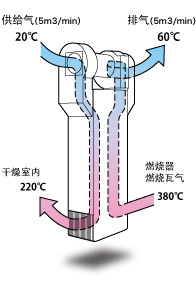 DRY TEC具有經(jīng)濟(jì)性、安全性的特點(diǎn),是TAKUBO自主開發(fā)的余熱回收型熱風(fēng)干燥爐系統(tǒng)。